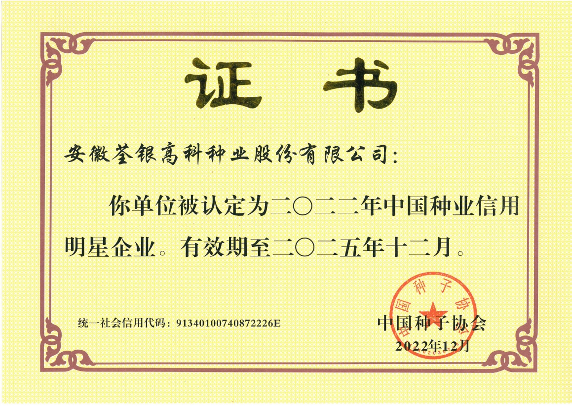 安徽荃銀高科種業(yè)股份有限公司是一家“以種業(yè)為核心、農(nóng)業(yè)服務(wù)為延伸、探索和創(chuàng)新農(nóng)業(yè)多元化發(fā)展”的現(xiàn)代高科技種業(yè)上市公司,證券代碼:300087。公司注冊(cè)資金9.47億元,系“中國(guó)種業(yè)領(lǐng)軍企業(yè)、農(nóng)業(yè)產(chǎn)業(yè)化國(guó)家重點(diǎn)龍頭企業(yè)、國(guó)家高新技術(shù)企業(yè)、農(nóng)業(yè)部首批農(nóng)作物種子育繁推一體化企業(yè)、中國(guó)種業(yè)信用明星企業(yè)"。在國(guó)內(nèi)控股子公司20多家,在國(guó)外設(shè)立分支機(jī)構(gòu)4家,良種銷售至全國(guó)20多個(gè)省(市、區(qū)),出口覆蓋20多個(gè)國(guó)家與地區(qū),種業(yè)綜合實(shí)力、雜交水稻研發(fā)、推廣及海外業(yè)務(wù)規(guī)模均居全國(guó)種子企業(yè)前2位。